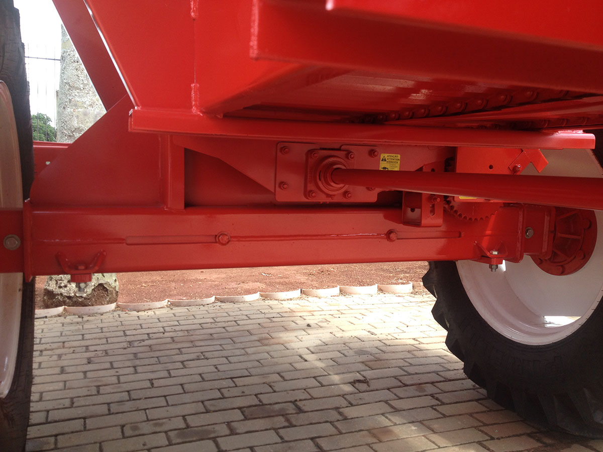 The distribution discs are driven by a transmission with shafts and universal joints.